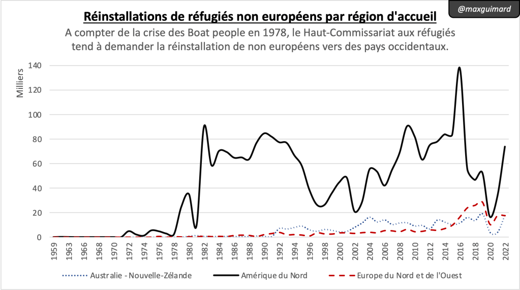 Les archives, du point de vue de la diplomatie française, ne conteste pas cette représentation. Il arrive certes que le Haut-Commissaire demande à la France de recevoir une dizaine de réfugiés Haïtiens accueillis en République dominicaine[viii], mais la situation est finalement rare, comme en témoigne les données publiées par l’ONU sur les réinstallations réalisées depuis 1959.