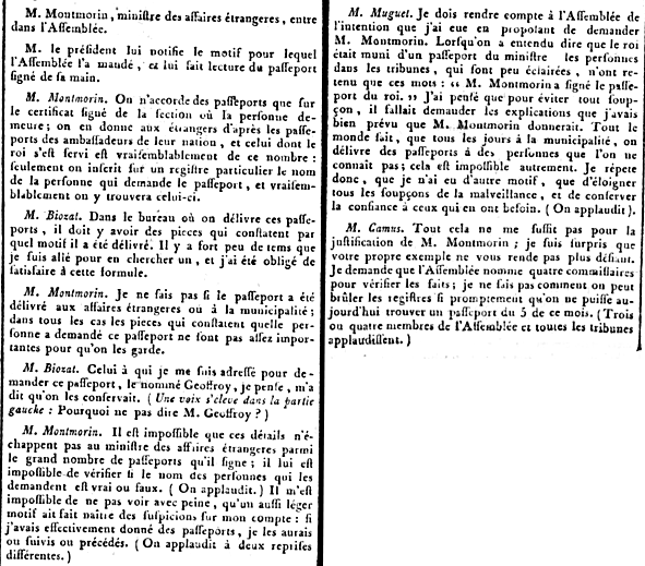 Il semble que c’est la fuite de Varennes qui provoque cette généralisation du passeport. Au cours de la nuit du 21 juin 1791, le roi de France Louis XVI, la reine Marie-Antoinette et leur famille immédiate tentent de rejoindre le bastion royaliste de Montmédy, à partir duquel le roi espérait lancer une contre-révolution. Or, le roi, déguisé, était mentionné comme valet dans le passeport utilisé pour sa fuite. Le ministre des Affaires étrangères, Armand Marc de Montmorin, qui a signé le passeport, est convoqué à l’Assemblée nationale où il est innocenté à la suite de débats et d’enquête. L’information est rendue publique à « son de trompe » pour lui éviter d’être lynché par la foule assemblée devant sa demeure*.